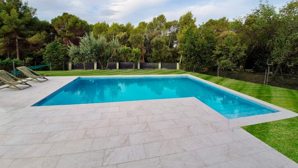 Piscina con material porcelanico